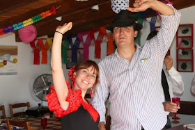 Primero fotos, luego música y rebujito, continuamos con un montón de platos de comida, más rebujito, mucha sevillana, muuucho sol, calor,.. caseta y baile. ¡Olé, olé!