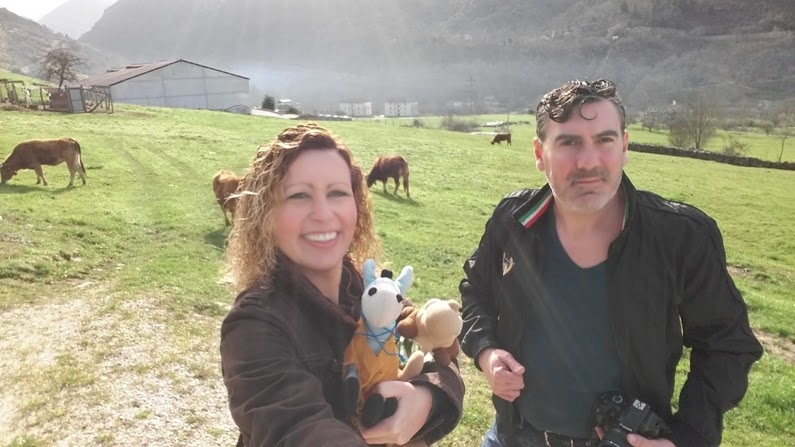 Terminada la senda, cruzamos el pueblo y nos pusimos camino al barrio alto, pasando por la bonita y bien conservada Iglesia de Santa María de Llas y desde allí hasta arriba del todo, ¡hasta que se terminó el camino! Nos encontramos de sorpresa.... ¡vacas saliendo por una puerta! jejeje ¡si no cabían! y salíaa una, otra, otra,... jajaja no sé cuantas pero al menos salieron 8.